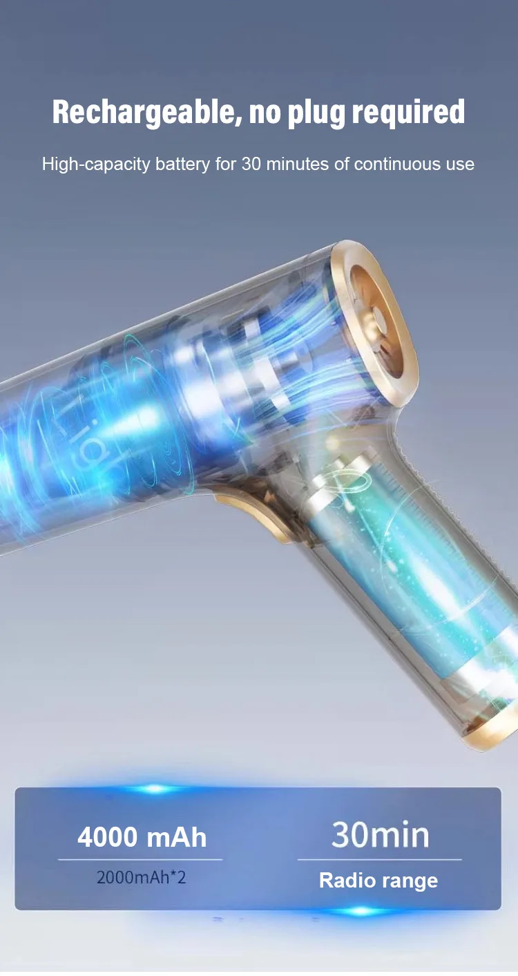 Cordless handheld design — light, compact and easy to carry