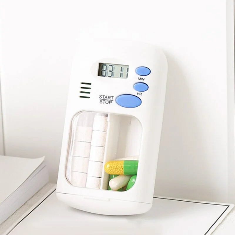 This compact electronic pill organiser features a built-in alarm timer and LED display, helping you keep track of scheduled reminder times throughout the day. Its simple interface and clear screen make it easy to use at home or while travelling. Ideal for individuals who value routine, organisation, and convenience in their daily schedules.